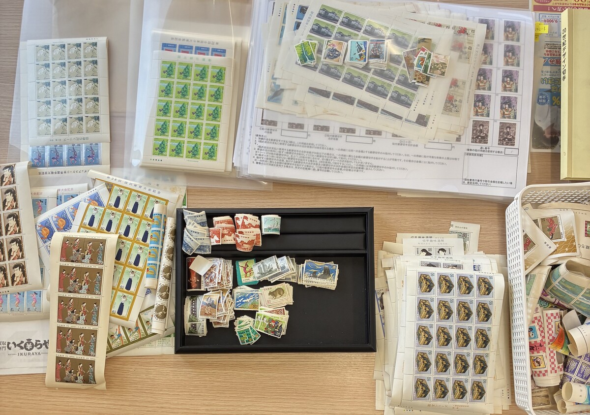 先日、相模原市のお客様より 大量の記念切手・普通切手シート をお持ち込みいただき、お買取りさせていただきました。